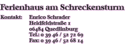 beim Ferienhaus am Schreckensturm in Quedlinburg, der Weltkulturerbestadt am Harz. Ferienwohnungen zu Fuße des alten Turmes erwarten Sie zur Begrüßung.